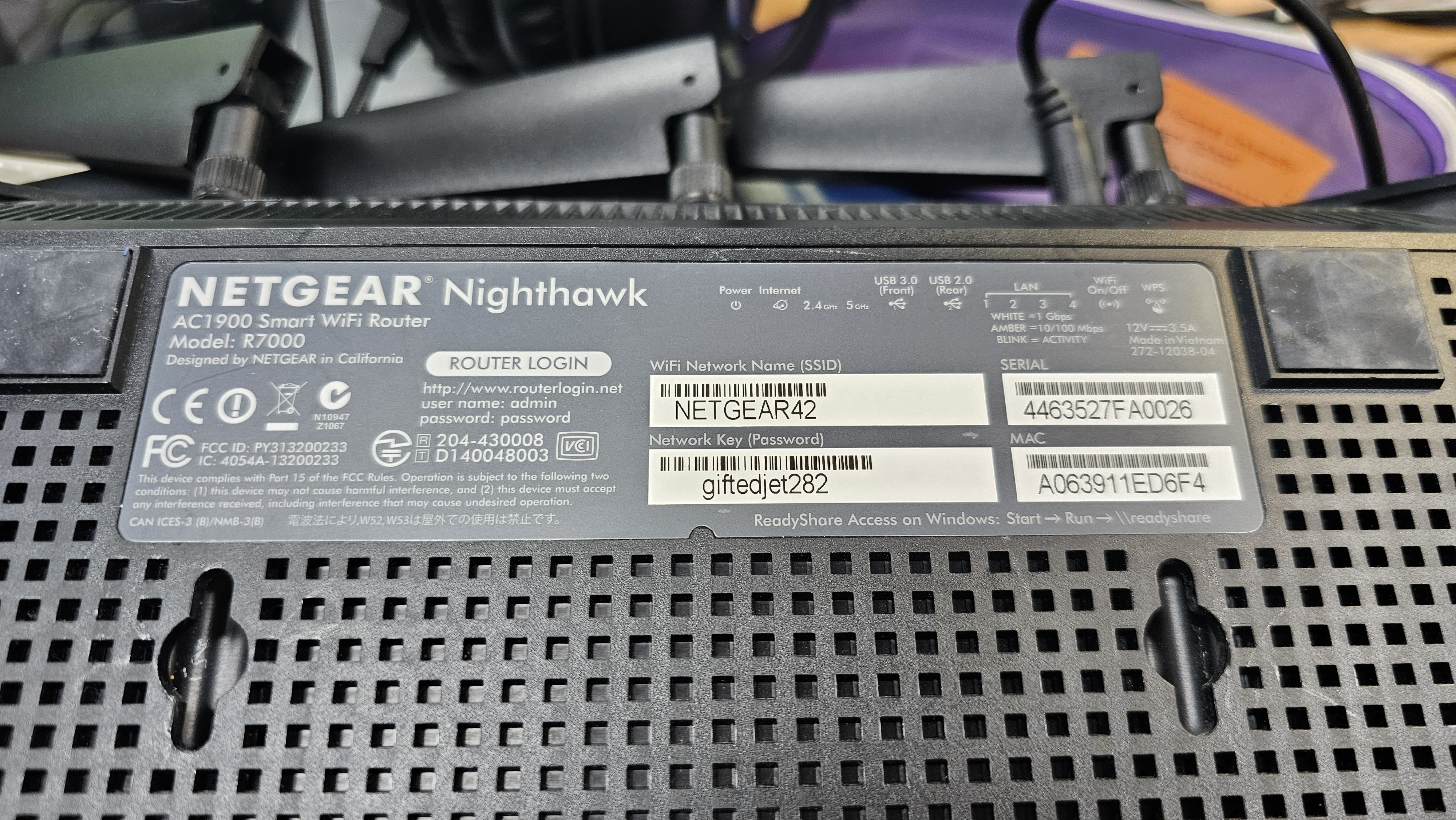 취득 때 사용하라고 교수님께 라우터 Netgear Nighthawk R7000 (AC1900 Smart WiFi Router) 모델을 전달 받았다. 아직 라우터 사용이 친숙하지 않아서 일단 이것으로 네트워크를 설정하고, 동기화된 20-30여대의 카메라에 명령을 내리는 과정을 연습하는 것이 필요한 상황이다. (https://www.netgear.com/home/wifi/routers/r7000/)
