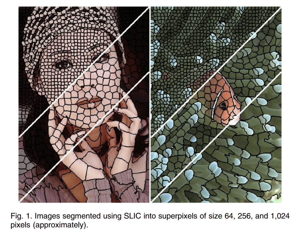 - SLIC는 알고리즘은 영상의 픽셀을 유사한 속성(색상, 텍스처, 밝기 등)으로 묶어 슈퍼픽셀을 생성