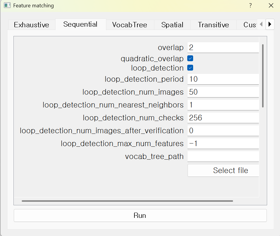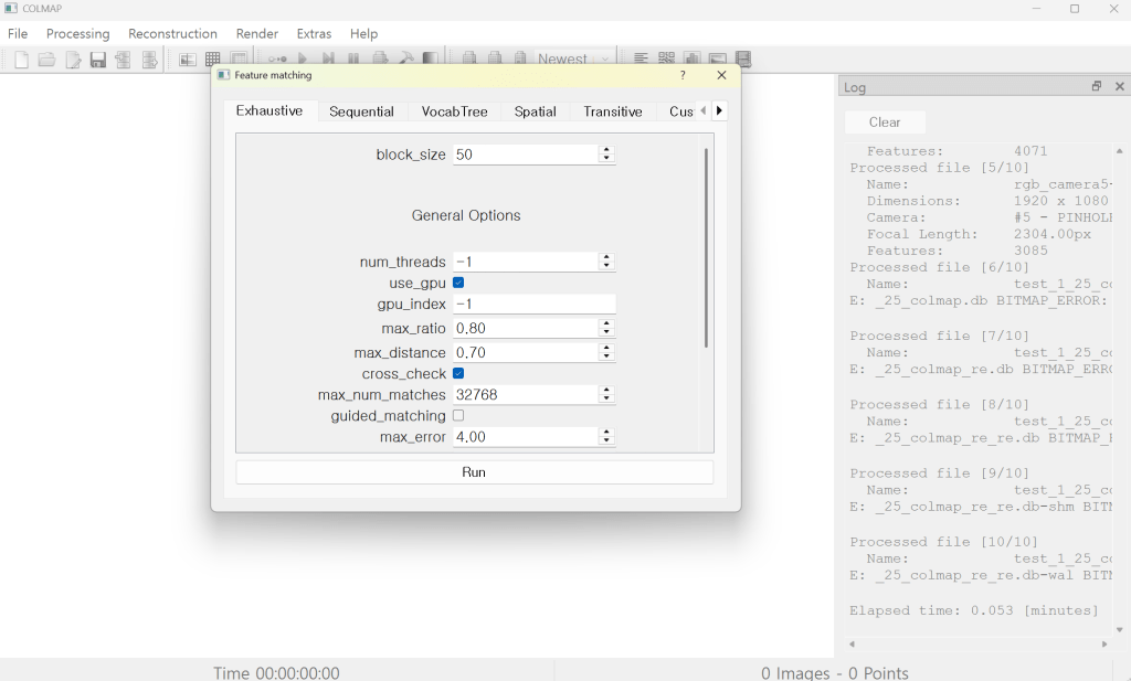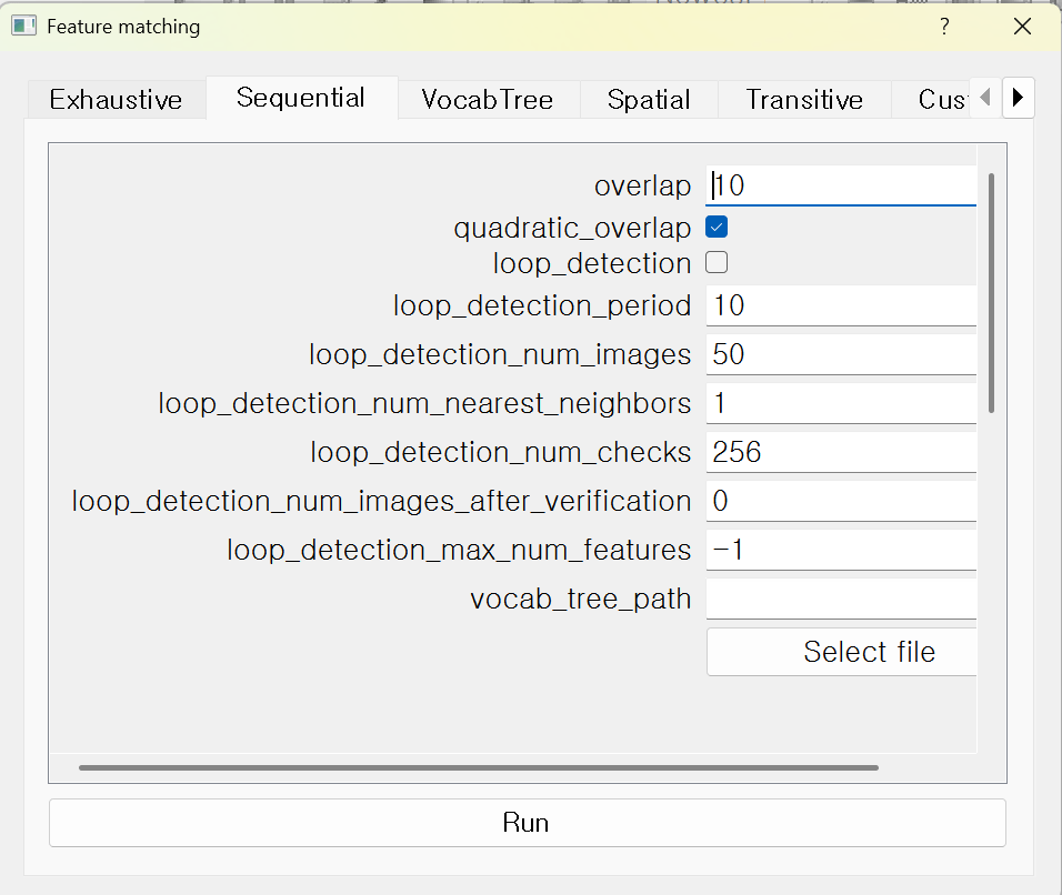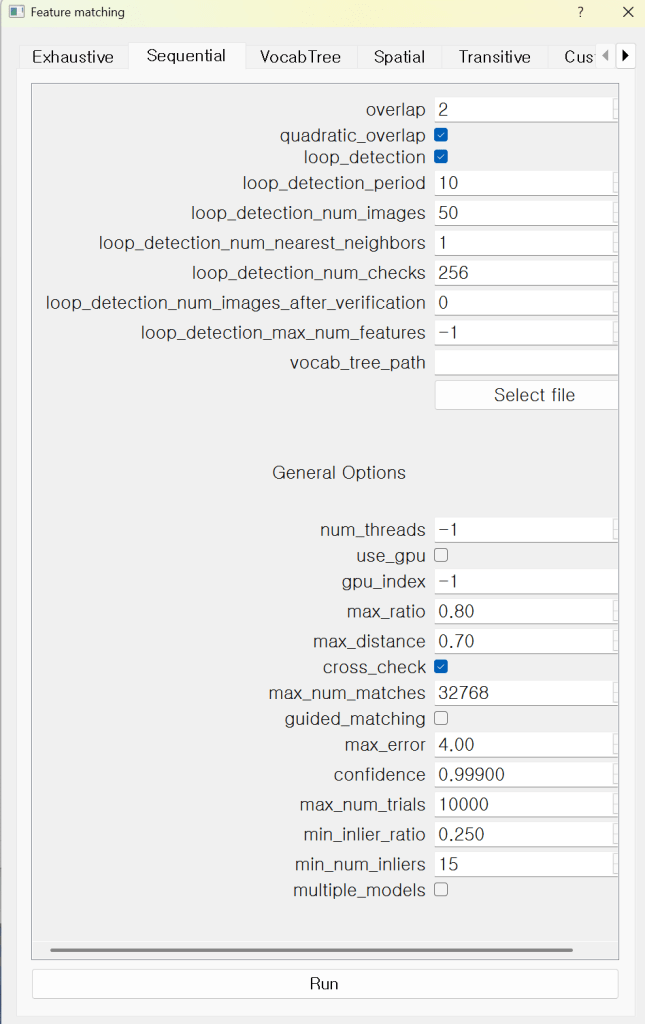 🌟 COLMAP에서 Sequential Matching 실행