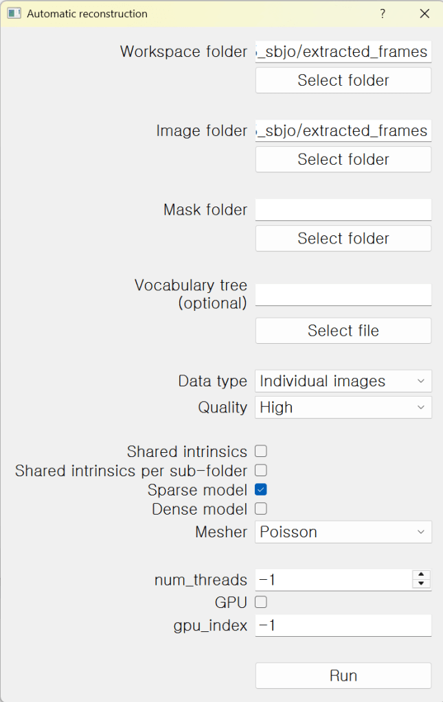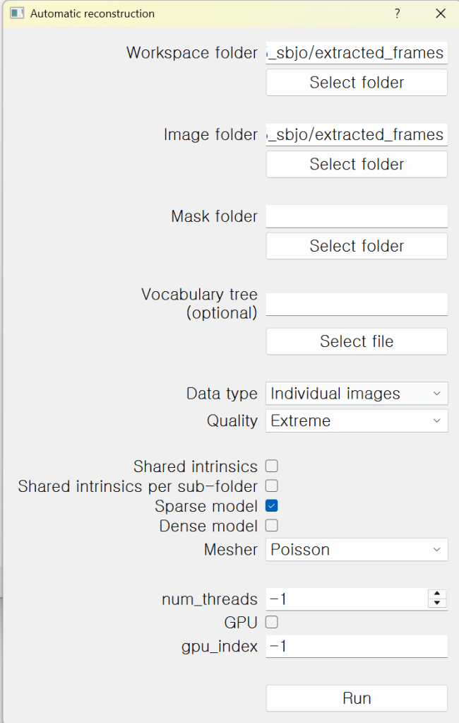 처음에는 소스코드 다운-빌드-설치도 어려워 했었는데 (>.<), COLMAP GUI만 봐도 기쁘다