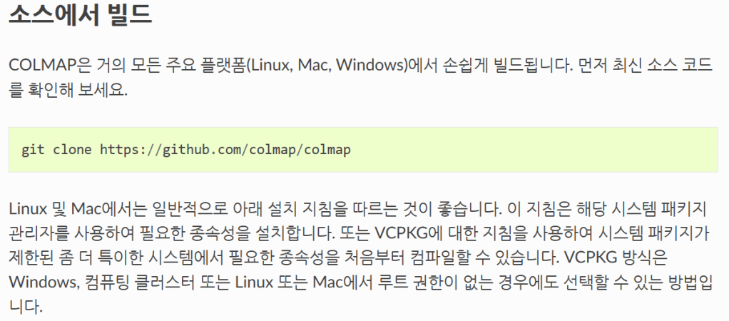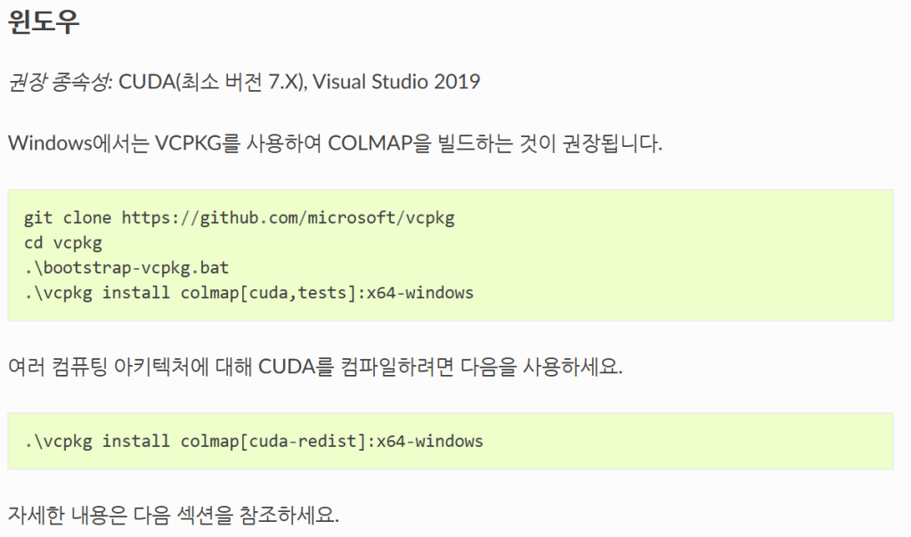 - colmap 빌드/설치 상태 (cuda 지원)